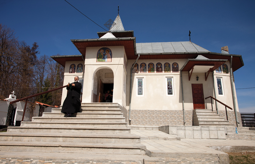 Biserica Ortodoxă este construită pe cea mai înaltă colină şi are dimensiuni mai mari decât celelalte două lăcaşe de cult, arătând diferenţa numărului de credincioşi. Este construită în stil tradiţional, sub formă de cruce, are toate camerele unei biserici: altar, naos, pronaos şi pridvor deschis, în stil brâncovenesc.